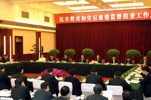 贺国强出席抗震救灾和灾后重建监督检查工作会议并讲话