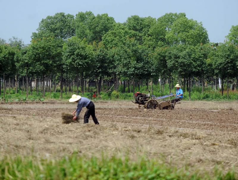 6月8日,浙江省长兴县泗安镇农民在田间耕种。