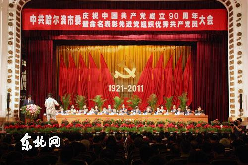 中共哈尔滨市委庆祝中国共产党成立90周年暨表彰“先优”大会在哈尔滨友谊宫召开