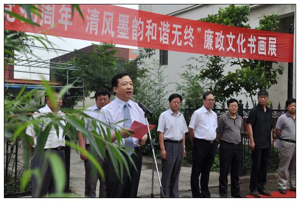 开幕式上,县委常委、纪委书记韩自安同志,市纪委常委、监察局副局长杨文同志、县内书画界代表艾肥珊分别致辞。开幕式由县纪委副书记兰崇双同志主持。