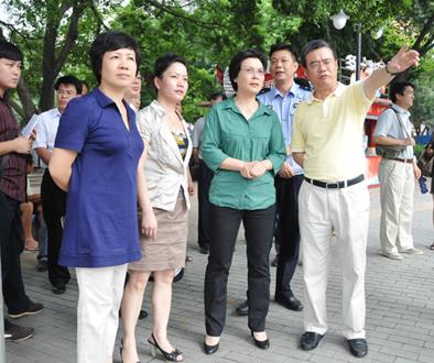 邓金玉书记(前右二)一行来到朝阳广场详细了解广场及路口管理工作现状