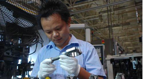 说明来意,张久云热情地把记者领到他所在的发动机生产车间,记者看到车间里头一派繁忙的景象,听到阵阵富有节奏感的数控机床加工声,采访就此开始,一个一线汽车工人的成长足迹也随之徐徐展开……