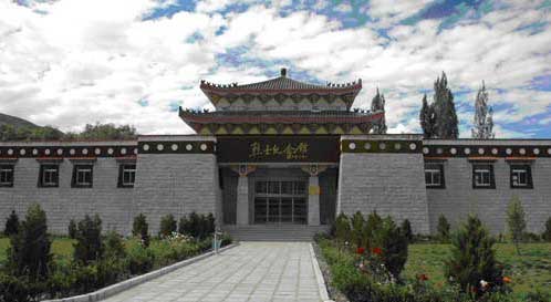 陵园现有南北两馆,四个陈列室,两个大厅,建筑面积约1108平方米,为藏式宫殿建筑风格。馆内陈列着为建筑公路、进军西藏、平叛改革、中印边境自卫反击战以及西藏革命建设时期英勇牺牲的革命烈士事迹和遗物。有各种照片、油画、图片148张(幅),雕塑12座遗物。共有照片14张,油画10幅,雕塑2座。