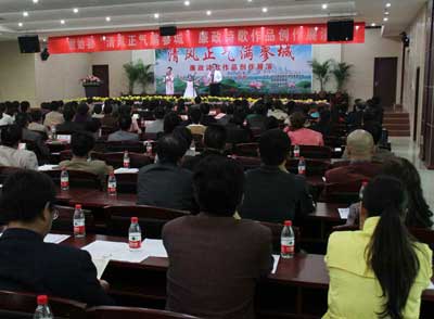 2011年11月15日下午,河南省固始县纪委举办“清风正气满蓼城”廉政诗歌作品创作展演赛,全县259名专职纪检监察干部观看了演出。