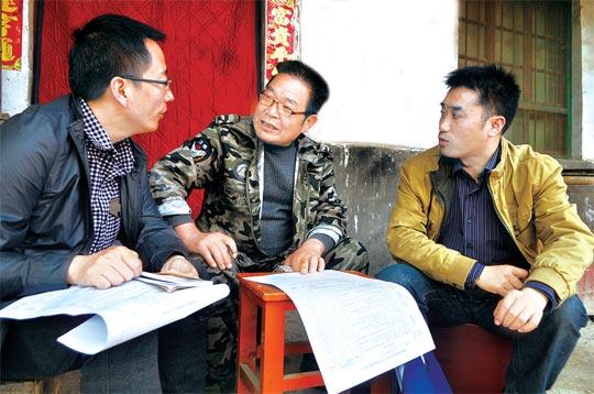 工作组在豫灵镇文峪村村民张安朝(中)家中作问卷调查。杨蓓蓓 摄