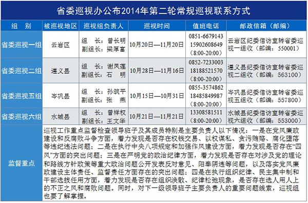 各巡视组已公布对外联系方式,巡视期间将由专人负责接受信访举报,欢迎广大干部群众反映情况。(贵州省纪委)