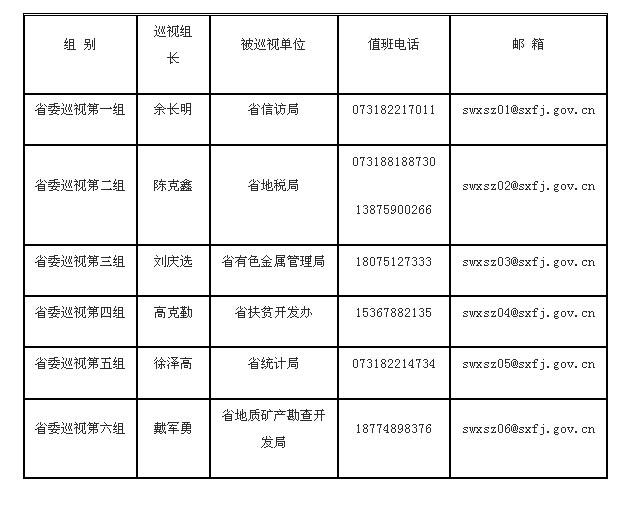 根据湖南省委巡视工作领导小组的部署,并经省委同意,10月下旬开始,省委巡视组分别进驻省信访局、省地税局、省有色金属管理局、省扶贫开发办、省统计局和省地质矿产勘查开发局6个单位,开展今年第四轮巡视工作。