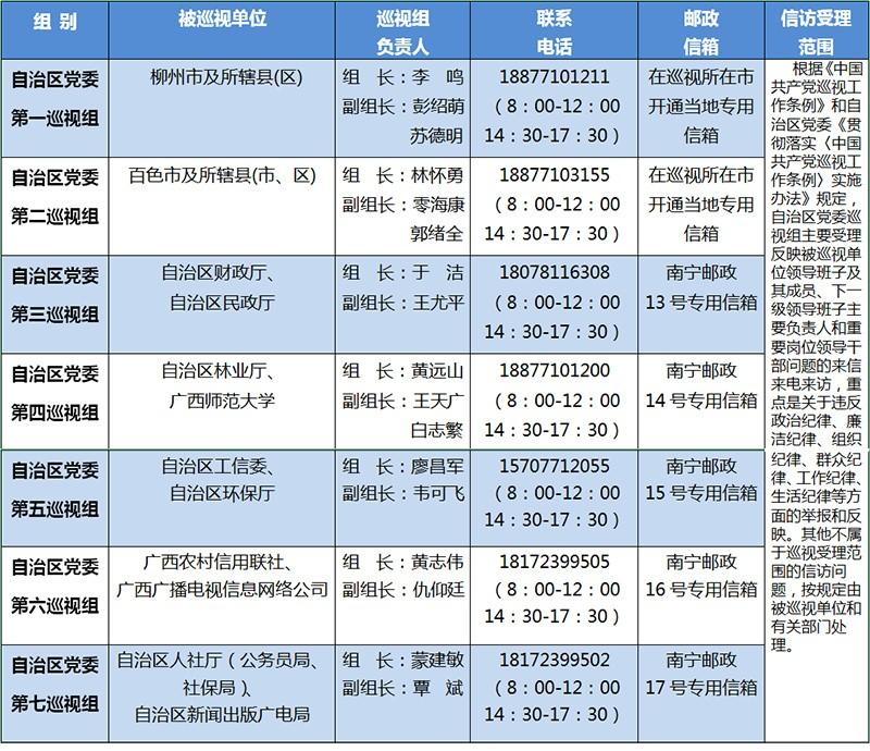 广西:7个巡视组对14个单位开展巡视 公布电话邮箱
