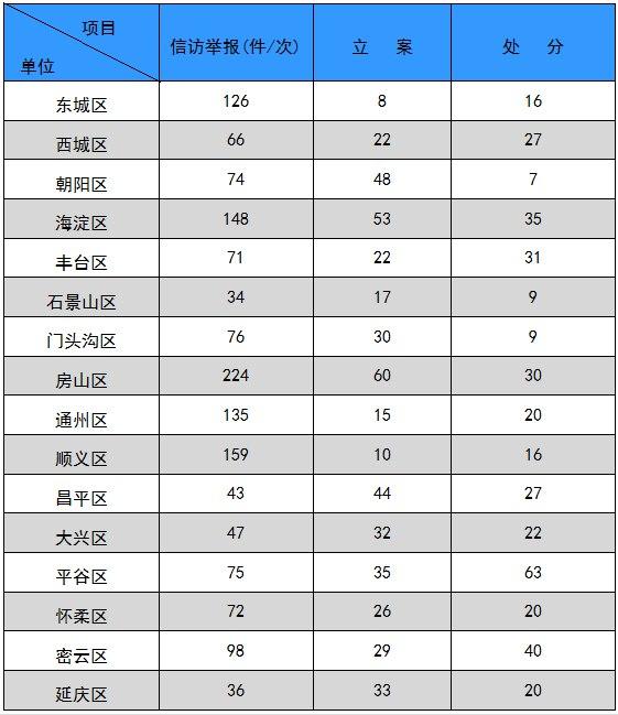 2017年1至3月北京市各区纪检监察机关纪律审查情况表