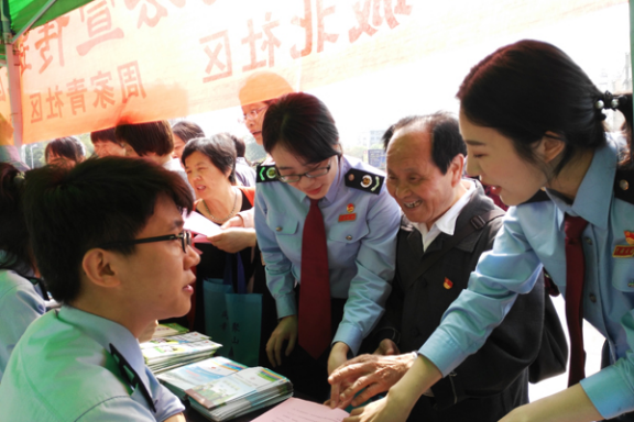 依法征税,依规履职,把清廉税收宣讲到干部群众。五四青年节来临之际,江山市国税局监察室青年干部占欣等人走进社区,向社区居民宣传税收政策,欢迎社区居民对清廉税务进行监督,营造廉洁氛围。