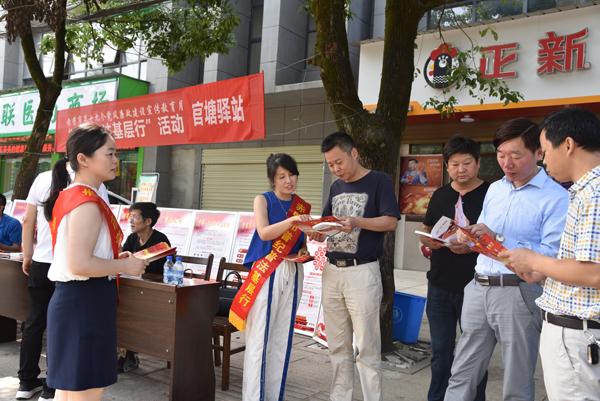 为了把学习宣传贯彻《监察法》范围向基层拓展,向所有监察对象延伸,做到全覆盖、无死角。5月份以来,赤壁市纪委监委联合市司法局积极开展“普纪普法基层行”活动。近日,普纪普法宣传小分队来到官塘驿镇,在活动现场,工作人员向群众发放宣传手册,并详细讲解监察机关及其工作职责、监察范围、监察权限等重点内容。同时,通过摆放宣传展板、悬挂横幅、设置法律援助咨询台、发放书籍等形式,全方位、多角度向群众宣传监察法知识。活动吸引了过往行人驻足观看,大家纷纷领取宣传手册,并积极咨询。据统计,活动当天发放宣传手册500余份,接受群众咨询45人次。
