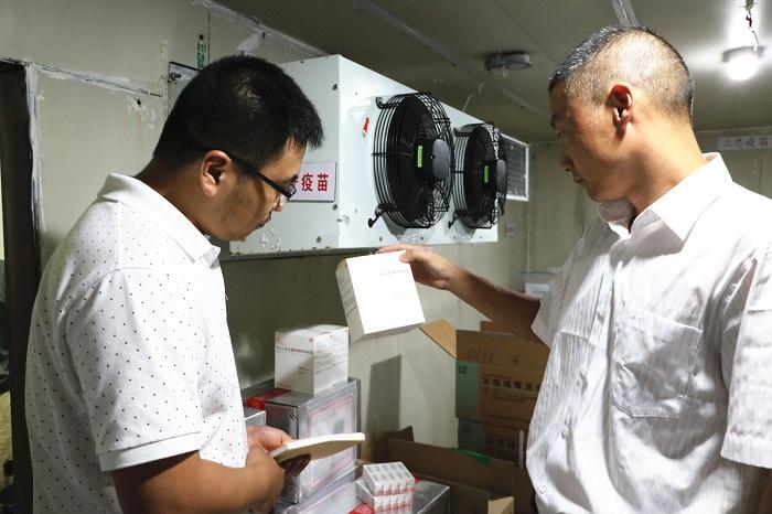 图为该市纪委监委工作人员正在疾病预防控制中心检查疫苗管理情况。(仪征市纪委监委)