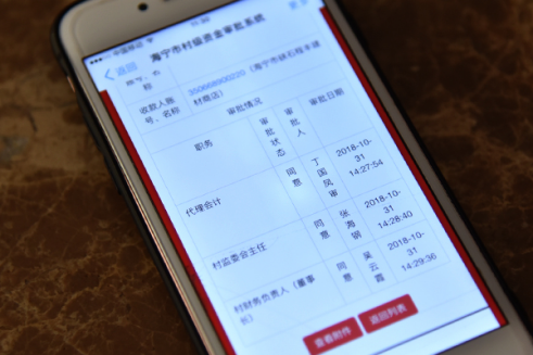 让“阳光村务卡”效能得以充分发挥的,还有一个平台的支持,就是该市开发的村级集体资金支付网上审批系统。通过系统,每笔村级财务支出情况,包括发票、支出凭证、附带材料等,镇村相关人员都可以随时在手机上查看支出情况,大大强化了财务的公开和支出的监督。另外,还可以在手机上随时随地进行审批,大大节约了审批时间。