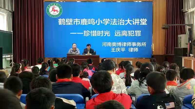 清廉网讯(时保齐 牛保有)为实施教育“奋进之笔”,推动落实教育部等九部门《关于防治中小学生欺凌和暴力的指导意见》,增强学生的法律意识,我校深入开展了防治学生欺凌工作并取得明显成效。11月5日下午,河南鹤壁市鹿鸣小学法治大讲堂如期开展。河南奥博律师事务所王庆平律师,为全校师生作了一场《珍惜时光,远离犯罪》的青少年法制教育报告。