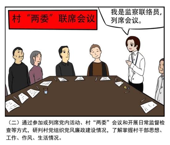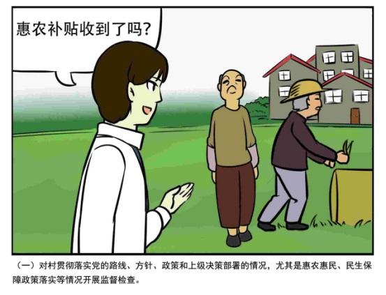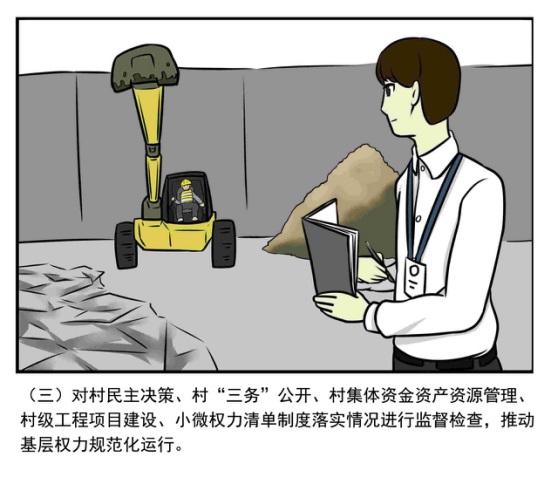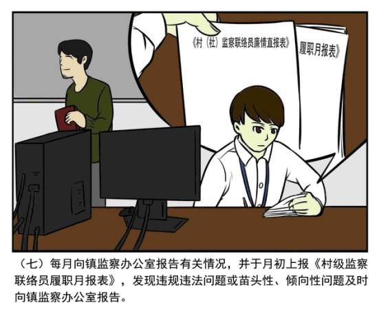 这份履职清单是由十张漫画构成,漫画下方是履职清单的具体内容,清单篇幅不长,但字字句句都为“干货”,是给村级监察联络员量身打造的履职宝典。对村贯彻落实党的基本路线、方针、政策和上级决策部署情况进行督查;对村民主决策、村“三务”公开进行监督检查;推动村党组织主体责任落实;加强党风廉政建设工作等各个方面的重点均有体现,并且对这些内容又进行了细化明确,各村村级监察联络员的日常工作,只需对单落实即可,更加方便村级监察联络员做好各项监督工作。