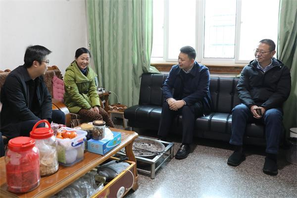图为杨富强(右二)在太湖源镇杨桥村走访,了解村民家庭生活情况