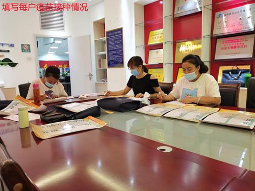 村、社区服务中心所挂“作战图”以不同颜色明显区分辖区范围内7片的具体方位,并详细标注了各片总人数,每日计划接种和实际接种人数。工作人员依照“作战图”片区划分,网格管理,第一时间精准筛查整理出常住户、租住户等具体信息数据,并迅速锁定外地返乡人员位置,极大地方便了网格员有针对性的采取入户登记、电话登记等方式开展人员摸排工作,确保摸底排查不漏一户一人。例如,乾沁源小区每个楼道内张贴了每户疫苗接种情况表,把户内人员分为已接种、未接种、12岁以下人员、有病不能接种四种类型进行登记,确保做到底数清晰,更好推进疫苗接种工作。