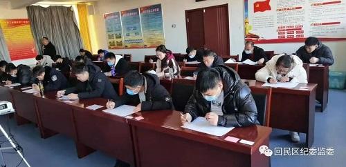 从拟提拔干部动员会议开始,回民区纪委监委驻市场监督管理局纪检监察组持续发挥派驻“探头”作用,对《回民区市场监督管理局股级干部竞争上岗实施方案》的规范性进行认真审核,对谈话推荐、会议推荐全过程以及考试出题及判卷程序的规范性进行全程严格监督。2021年11月30日上午,派驻纪检监察组带领局机关纪委全体同志对执法能力水平测试进行全程监考,保障提拔干部的合理性、规范性和公平性。