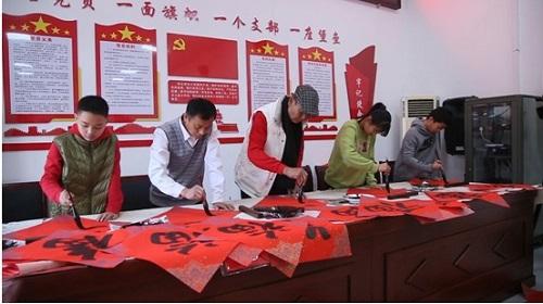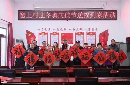 室外冬日暖阳,室内翰墨飘香。胡家辉老师携弟子袁凤红、李安铎等人一起现场挥毫,一幅幅各式字体的“福”跃然纸上,赠送给窑上村村民,现场气氛热烈,村民们脸上都洋溢着幸福开心的笑容,正是象征着对北京冬奥会的热烈期盼,象征着近两年来抗疫的团结一心,象征着群众对新春佳节全家团圆的美好祝愿。现场村民互相祝福,热情洋溢请“福”回家。