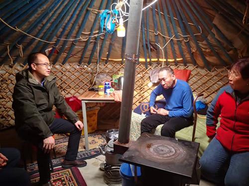 吴智还听取了驻村工作队关于乡村振兴工作情况汇报,并围绕 2022 年度各项重点任务同嘎查两委班子主要负责人进行交流。吴智对驻村工作队过去一年的倾情投入表示肯定,并要求驻村干部全面总结脱贫攻坚取得的成绩,新的一年要在建设基层党组织、推进强村富民、推升治理水平、强化稳边固防上持续发力,不断增强自身参与乡村振兴的责任感、使命感与荣誉感,精神饱满投身于巩固拓展脱贫攻坚成果和乡村振兴有效衔接,将一张蓝图绘到底。