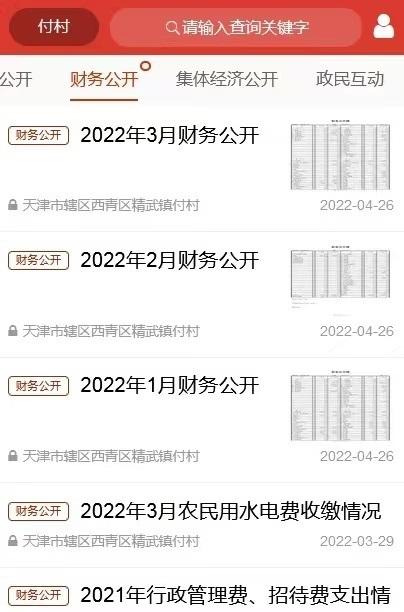 “天津市村务公开平台”公布村民关注的各类事项