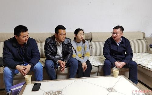 河池市国投集团党委书记、董事长华伟(右一)到子公司“一把手”家中开展廉政家访。