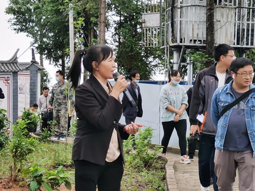 新寨村党总支书记鲁凤珊(右一)正在介绍该村抓党建促乡村治理成效情况
