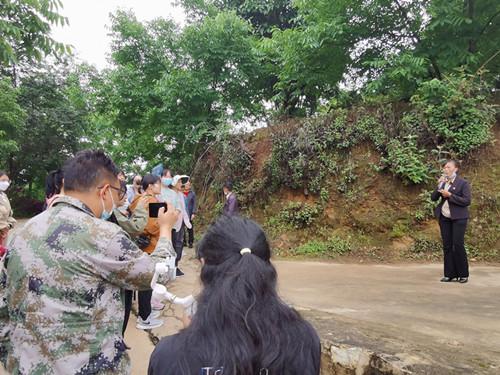 新寨村党总支书记鲁凤珊(左一)正在介绍该村村民自发建设“德道”工程情况