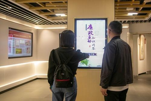 展馆负一楼设置附属厅,包含临展区、视听区和文创区。临展区作为纯数字化主题展馆,创新采用多媒体展陈方式,打造智慧展馆,使展陈内容更丰富、更立体化,“五四青廉说·干部话清廉”等廉洁主题活动不间断在此开展。