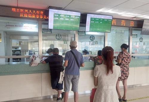 怀化市第一人民医院门诊大厅,群众正在排队取药,全市医疗机构规范药品及耗材设备采购后,药品和医疗费用大幅降低。