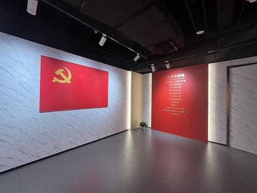 尾厅设置党旗、国旗、入党誓词、宣誓台等供参观人员开展活动、合影留念。