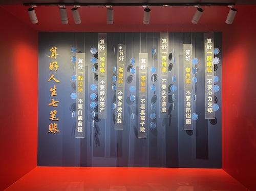 松江历史悠久,境内人才辈出,文化底蕴厚重,被誉为“上海之根”。序厅内简要介绍了松江区的概况,并以设置主题演绎“以贪为戒”作为参观学习的开端,引导党员干部夯实清正廉洁思想根基。