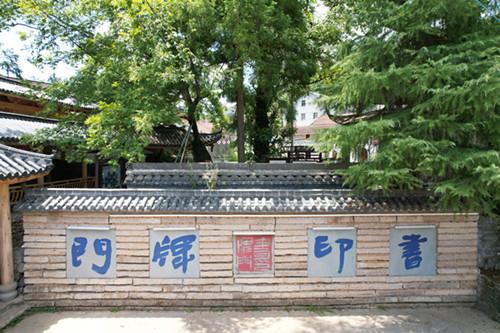 祠堂对面,便是一廊,“書印牌門”四字跃然于石碑。长廊于2021年重建,以篆刻演变史为主线,保留了集楷书、行书、隶书、草书、篆书五种字体的书法篆刻石碑。如果说“清白纸上写清廉”是该村书法馆的形象比喻,那么长廊碑林的篆刻凸显的就是“气正风清方寸间”。