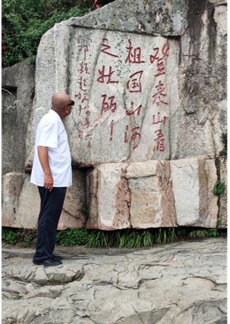 邓颖超同志81岁高龄登泰山并亲笔题词“登泰山看祖国山河之壮丽”