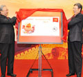 红色收藏年,纪念币面世、新邮发行、红色收藏交流会接二连三。图为6月29日,陶瓷邮票《中国共产党成立九十周年邮票珍藏》在景德镇问世。新华社图 ...