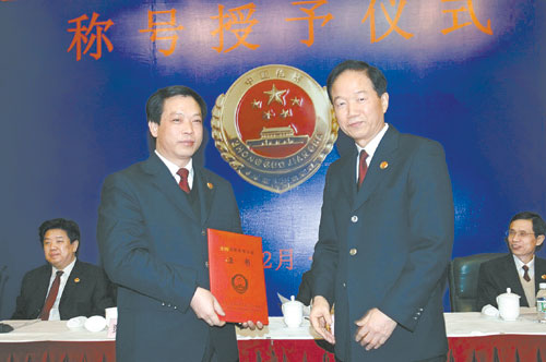 卢乐云(左)从时任最高人民检察院检察长贾春旺手中接过全国检察业务专家的聘书。省检察院提供 省人民检察院检察长龚佳禾(左)为刘革强颁发湖南省检...