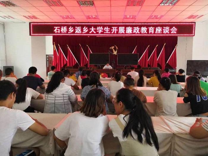 时值第二十个党风廉政建设教育月,新疆乌苏市石桥乡不断创新党课教育形式,于7月24日下午,石桥乡纪委与团委组织50余名返乡大学生,在政府三楼会...