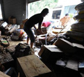 6月20日,常山县天马镇浦塘村一家批发商铺的工作人员将被水浸泡后的货物搬出。目前,浙江省衢州市常山县各级政府部门正在组织开展生产自救,全力保...